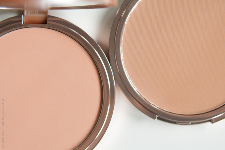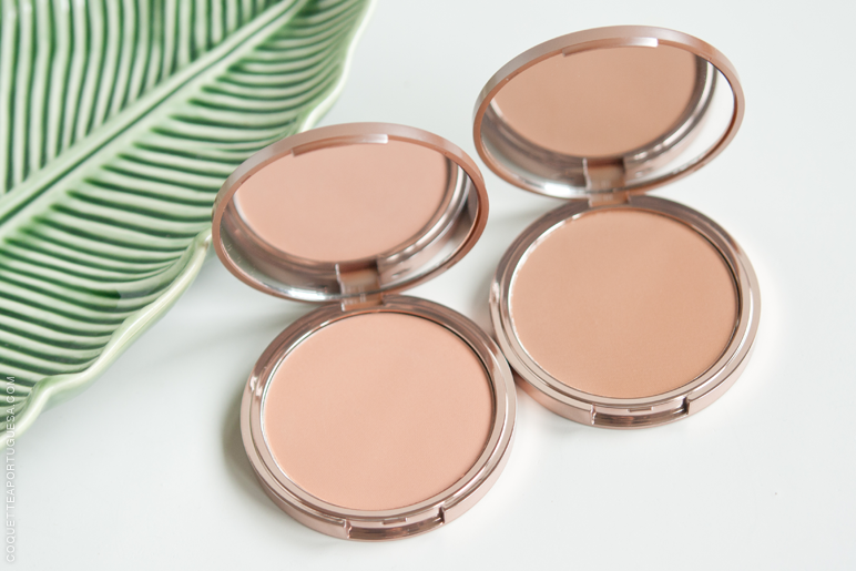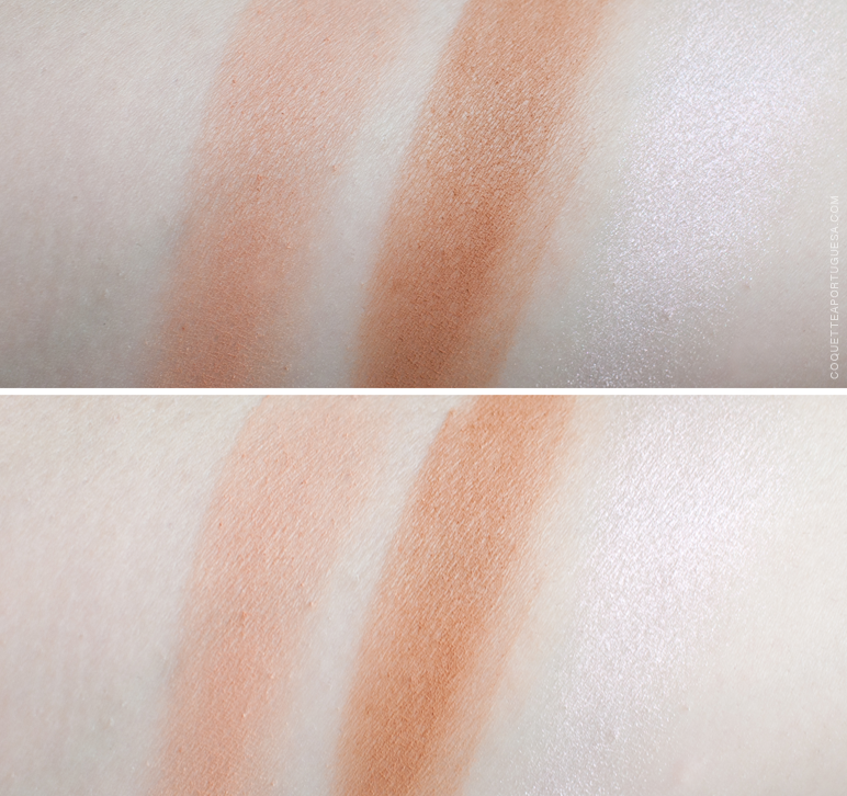 Os Beach Bronzer vêm em 2 tons, o Bronzed e o Sun-Kissed, os iluminadores After Glow Powder Highlighter vêm em 3 tons mas apenas tenho um para vos mostrar, o Aura.