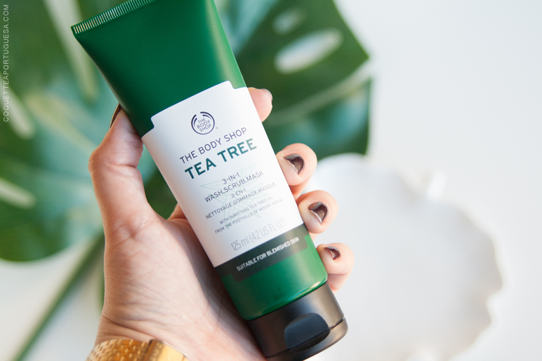 É o caso da nova máscara The Body Shop Tea Tree 3 in 1 Wash Scrub Mask (125ml). Uma máscara 3 em 1 que pode ser utilizada para limpar a pele, esfoliar ou máscara purificante.