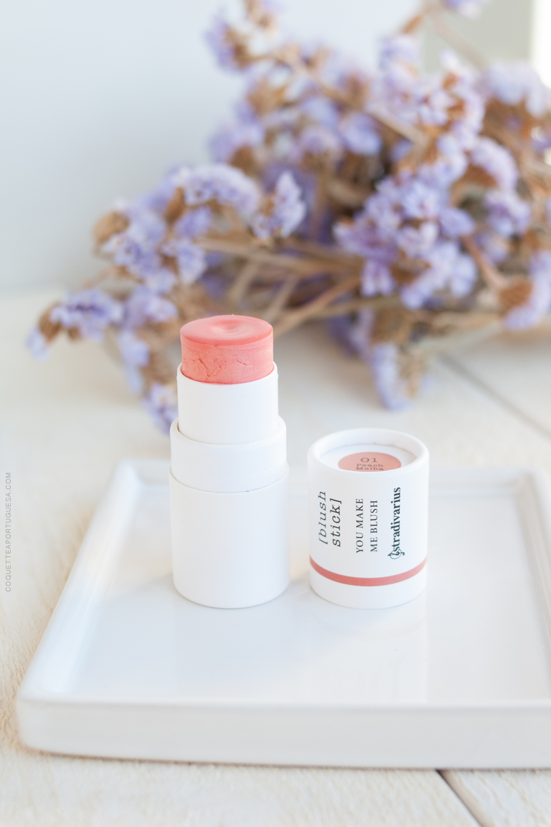 Stick Blush 4g - No tom 01 Peach Melba, é um blush de creme em stick, o tom é um pêssego subtil com brilhantes ultra finos dourados e prateados, é pigmentado e cremoso, fácil de esbater na pele, fica com um aspecto saudável e natural, com acabamento translúcido e luminoso. O menos bom dele é que não aguenta muito, não fixa ou seca, é preciso ter cuidado para não o retirar com as mãos sem querer.