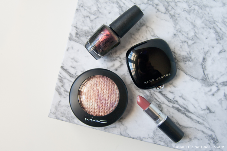 Blush Marc Jacobs 206 Reckless - Já o tenho há quase um ano mas só agora lhe comecei a dar a devida atenção, é um rosa frio e seco sem brilhos, tal como eu gosto mais agora na época do Inverno, um blush neutro e suave. A qualidade é excepcional, comparo-o facilmente com um NARS, pigmentado e nada poeirento, uso e uso e parece que não gasto produto nenhum da embalagem. PVP 33€ Sephora França
