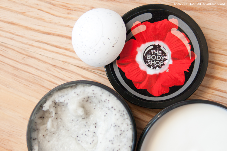 A The Body Shop anda a surpreender com as suas novas linhas, já não vai buscar inspiração só às frutas, começa agora a ir também às flores, como é o caso desta recente linha de Papoila, Smoky Poppy, quem diria han? Aqui no quintal nascem imensas nesta altura, e conheço bem o seu cheiro acre, não é uma flor cheirosa que dê vontade de a cheirar, mas tem o seu cheiro característico, forte e intenso, e assim é esta linha, não vai agradar a todos, principalmente quem está habituado aos cheiros doces e suaves da TBS, esta linha é ideal para quem acha esses cheiros enjoativos e demasiado óbvios, estão a ver?