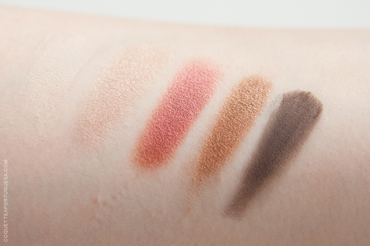 Sweeter End - Um champanhe rosado ligeiramente brilhante, é a sombra mais rija e menos pigmentada, é boa para iluminar o canto interno do olho.
