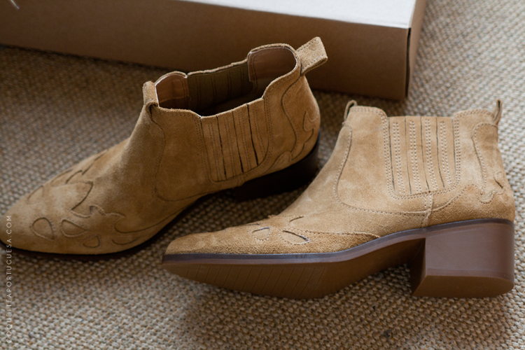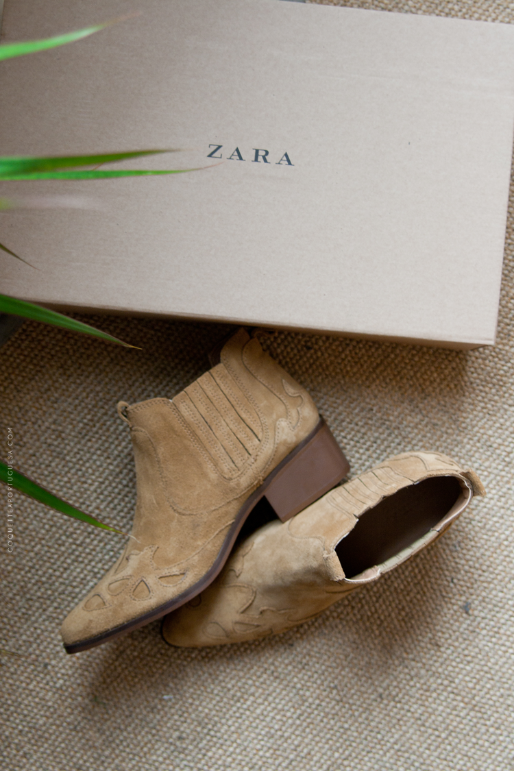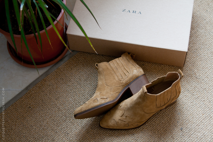 O meu último caso de amor foram estes botins estilo western/cowboy em pele, mal os vi no site soube que tinham de ser meus, infelizmente não havia stock desta cor nas lojas da redondeza então encomendei online com entrega grátis numa loja. Tinham um preço original de 49€ e comprei por 29€, nada mau hein? Pretendo começar a dar-lhes uso o quanto antes nesta Primavera, com skinny jeans, blusas leves, parkas...