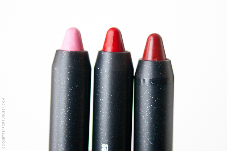 • Geral - Acho que são muito práticos de aplicar, especialmente para andar na carteira, como têm um formato mais fino que um batom são mais fáceis de manusear para definir as linhas dos lábios sem grande precisão. Adorei a fórmula dos tons mais escuros, são mate mas sem o desconforto que um batom Matte pode causar, definitivamente se comprar algum no futuro irei apostar nos médios e escuros.