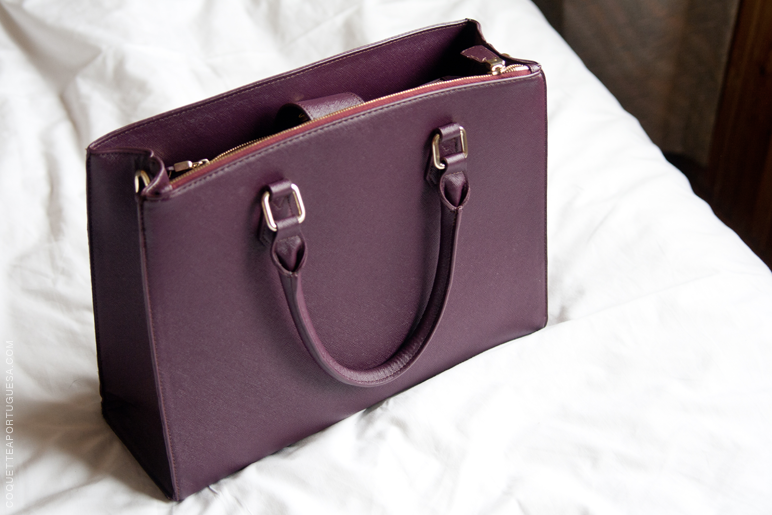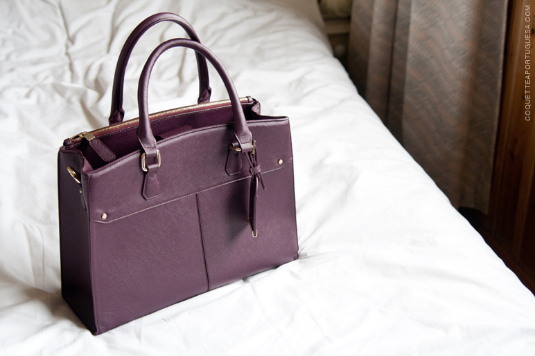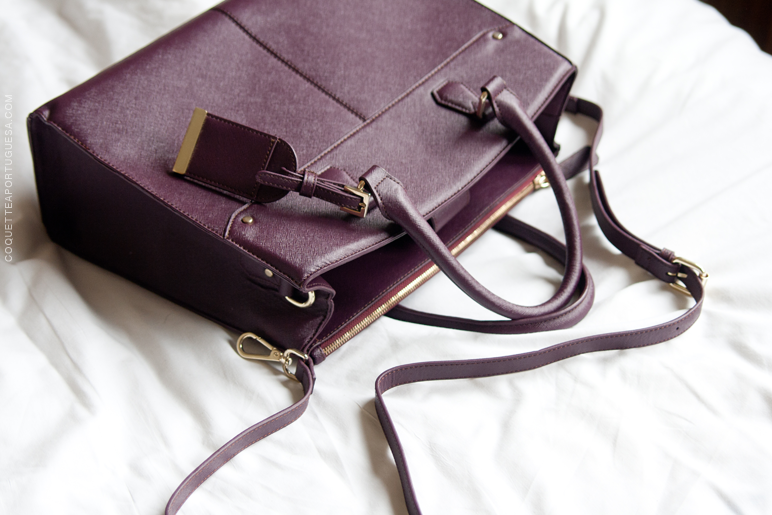 Adoro malas com formatos clássicos e cores clássicas também, raramente saio do preto, castanho, nude, mas quando vi esta mala na Accessorize super roxa, mesmo beringela.