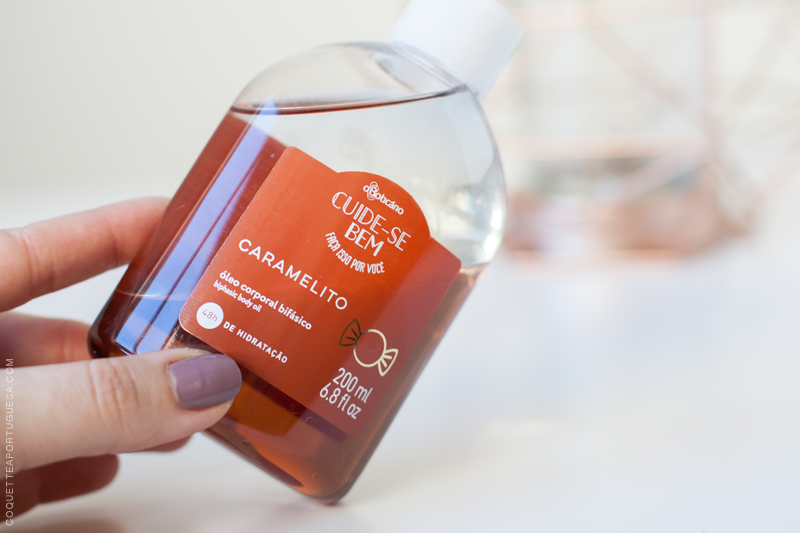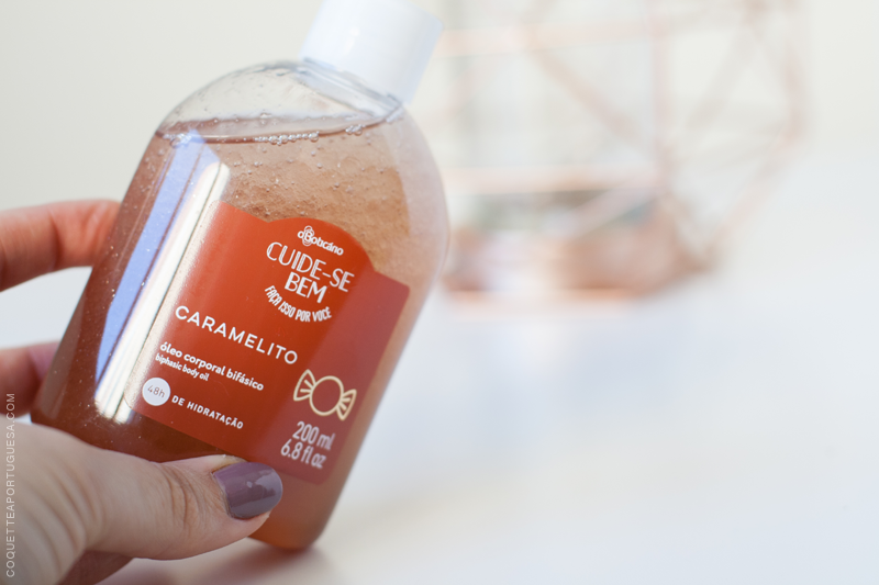 Depois o Óleo Corporal Bifásico Caramelito, promete até 48h de hidratação, este ainda consigo comprovar! Já adorava os óleos de banho antigos, e este não desiludiu também, deixa a pele sedosa e luminosa, com aquela sensação preenchida e hidratada, quando aplico este óleo escapo-me à aplicação do hidratante, é muito confortável!
